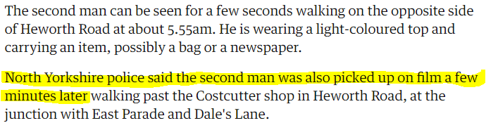 I know the cctv clip you refer to @Yozzer where the man in light jacket is walking on the far pavement on Heworth rd in the direction of Cost Cutters shop he is reported to be carrying either a bag or newspaper.