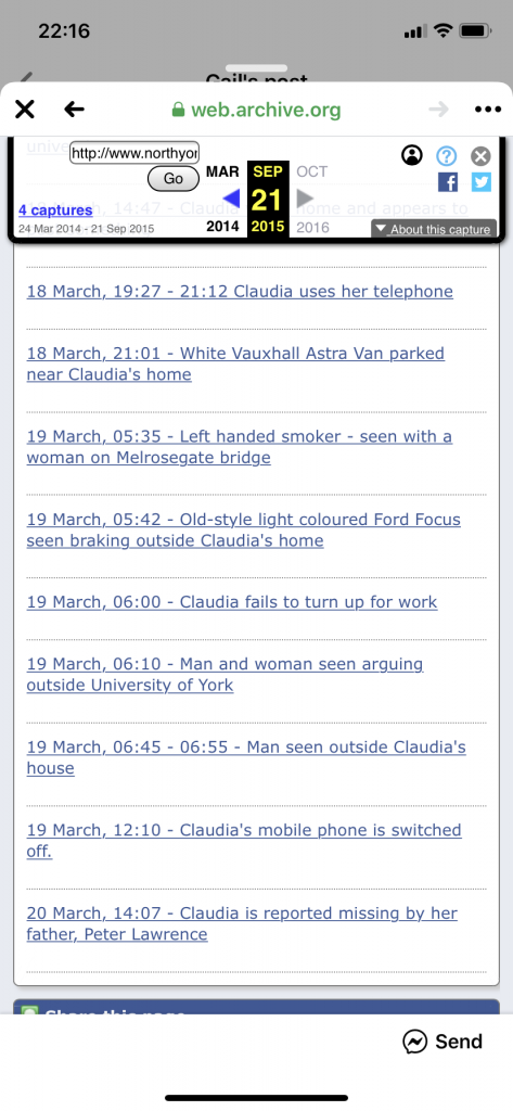 approx time Peter Lawrence arrived at Claudias House on fri 20th