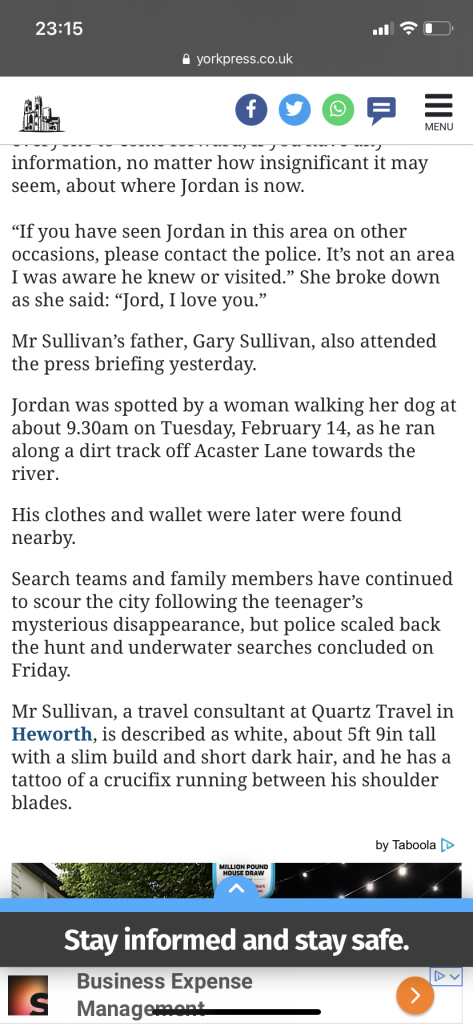 They say it was in an 8mile triangulation of York - so they know it was likely to be a local perp. Make no mistake they know within a few feet it’s position all of the time it was turned on - how do we know this? Because the police made it clear the phone was being used in the Acomb area leading up to her disappearance in the weeks before.