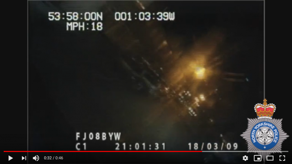 Rear end shot of last vehicle can just be seen under MPH: 16
