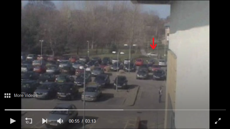 Ok, I was referring to the van within the white circle. There is a white car crossing the junction and I hadn't noticed the car seen on campus when Claudia left work.