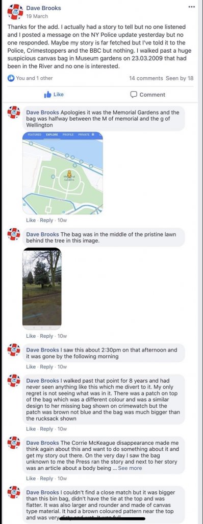 Is this the place where allegedly two police dogs took their handlers to ?ON the NYP website it says the Uni rucksack sighting was one similiar to Claudias