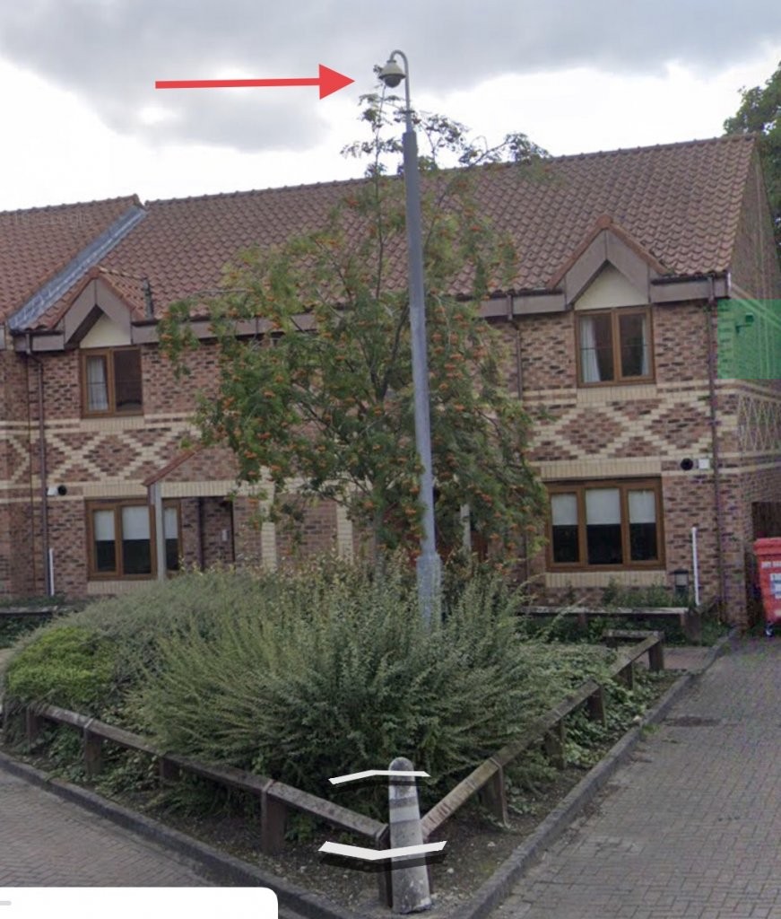 I incline more towards the pole camera because it has the better angle for seeing clear onto Heworth Road - the wall mounted camera also looks to be angled too far downward. Also, the pole camera matches the design of the camera on Heworth Road that captured the Ford Focus - presumably different owners for the two setups. As I said, I’m not sure I’ve seen any footage that would tally with the big white cameras, which seem to be focused tightly within the grounds of the Limes Court accommodation. Ford camera below: