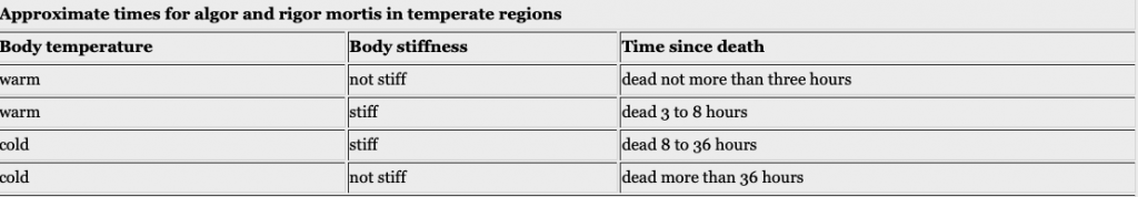 @Thelastleg Im not sure if anyone is suggesting that Claudia was wheeled off but it would be possible to get someone in a standard wheelybin, more likely if they were dead. Im sure that stages of Rigormortis would make this easier or more difficult-See attached chart