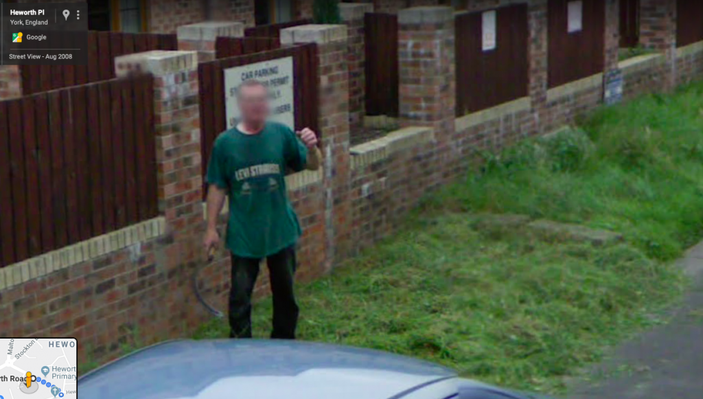 Interesting character seen cutting grass in Heworth Place in August 2008 with an item that would describe him as a terrorist today :)