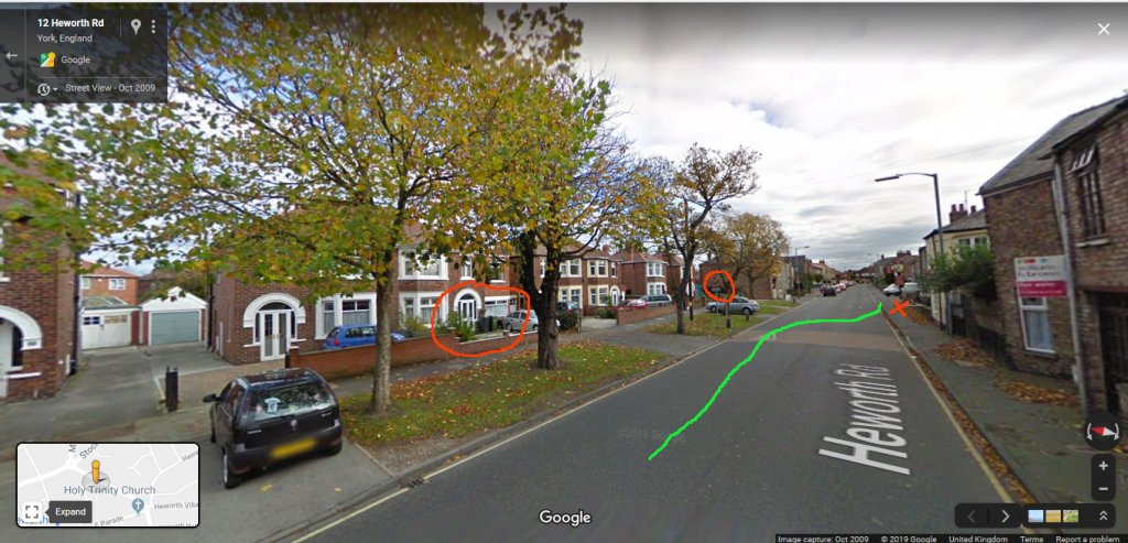 I looked at the ford focus video again and slowed down the bit as the car goes out of shot (be patient its running at 10% of normal speed)..wait a while (@31 seconds) and look at the top centre slightly to the left and u will see a light reflected in a house window..nothing new its obvious but if u watch it, and u really need to be on a monitor, u can see it actually travels to the right, dim but def there, ive played it frame by frame and it tracks across.. now the house it reflects in I have shown on the street view and to me anyway it looks like the reflected high level brake light of a car pulling in to the right..the house windows and walls are all at right angle to the street so the car would have to be turned for the light to reflect so bright..the time delay between the car going out of sight and it turning in could indicated the driver wasn't sure which house he was going to or is it that he overshot?.could of course be a neighbour being picked up for work...
