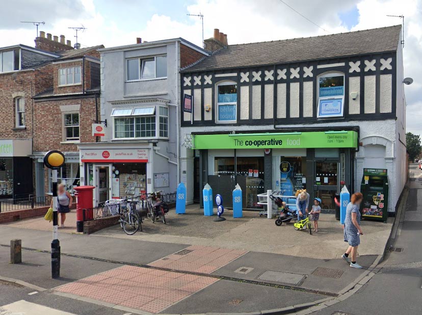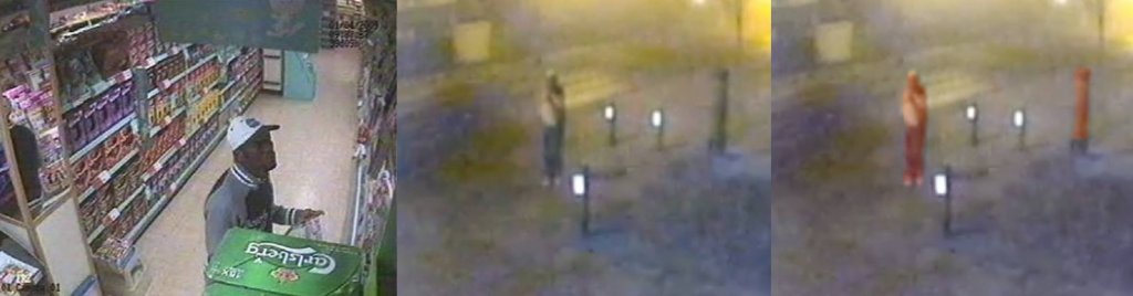 Here's "the man in the co-op" next to the CCTV footage from Melrosegate post office. The middle photo is from the CCTV unretouched. But, knowing that the post box was red, I've been able to use it as a reference to retouch in photoshop which gives us the right hand picture. The photo does seem to show a dark skinned young-ish man wearing a light coloured baseball cap, blue jeans and white trainers just like the description of the Tang Hall co-op guy. Note that Tang Hall co-op is off to the right of this photo ie from where the CCTVman is coming from. Click the thumbnail to expand the picture