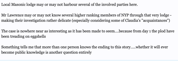 I thought @cortina had raised some very valid points. Claudia was certainly a strange type and some have tried to cover for her and in the end have made matters worse