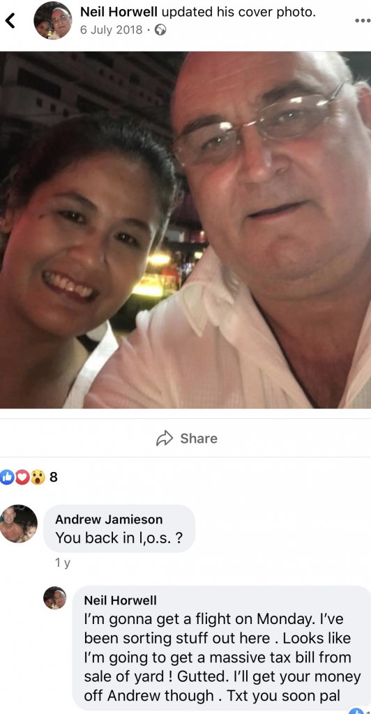 No he owed Andrew Jamieson money that's why he died....Jamieson supported York town but now lives the high life abroad with his Thai bride-Neil had similar tastes as can be seen.I think she was uncovered July 2018 by a third-party. Innocent, maybe.
