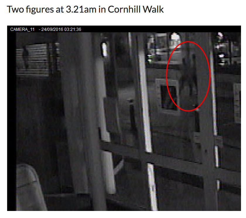 I'm wondering if at least the latter part of Corrie's wandering may be him trying to find a lift home? I don't know how food is sorted out at the base, but what if he hadn't eaten and knew he had nothing to eat at the base. So he buys loads of food, eyes bigger than belly or he felt a bit rough due to the amount of alcohol he's consumed, which could explain giving the food away and having a sleep. He wakes up and wants to go home. I don't know why he didn't call his friends, did he think they'd be back at the base already? He's lived there for several years and it seemed lots of people knew him, and presumably he knew a lot of people. The horseshoe had apparently very little traffic - just 3 vehicles and the bin lorry, but could it be where someone he knows parks whilst at work and that person should finish work soon? When Corrie looks up the road twice, could he think it's a/the person who may give him a lift at least part way home? What if that person didn't turn up but another car was there, maybe a bit iffy and they're not happy when they realise Corrie is hanging around, maybe sitting down against a wall, waiting. They ask him what he's doing, he mentions a lift back to base. If the people are iffy being seen by a soldier is not good. Maybe they think he's more likely to report what he's seen. Could they offer him a lift, except there's no room in the car. Corrie may suggest the boot, if he wants to get back for his dog. In he gets, the iffy people aren't sure what to do with him. They get to the middle of nowhere and decide to ditch him. He's so drunk he'll have forgotten by the morning. They open the boot and he's suffocated. They dump him, but it could be anywhere, though certainly remote.