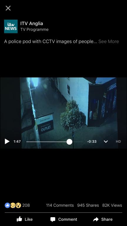 Thanks MidsummersDay. It certainly could be! I've only just seen your post, but was working on a suspicion it's actually reflecting in a strange way from a source beyond the cameras (rather than behind the cameras). If you look at CCTV #1 and keep an eye on the Cornhill Center (top right ish) then you see on one of its glass panes near the end of the clip, a flash, similar to this, and yes does look a bit neon like. It's possible to see how this might reflect into the image you and I have posted. Take a look at my map, cars seem to come up the road below where running man turns into a ? "Butter Market", thus headlights might shine onto that Cornhill window angled at 45 degrees, down to the 2 CCTV cameras (and that shop window). But it could also be from the direction you've suggested. It's probably nothing, at least now, I don't feel so inclined that it's a mobile phone in the alley or someone hiding in Gregg's. Thanks for the image and input on that!