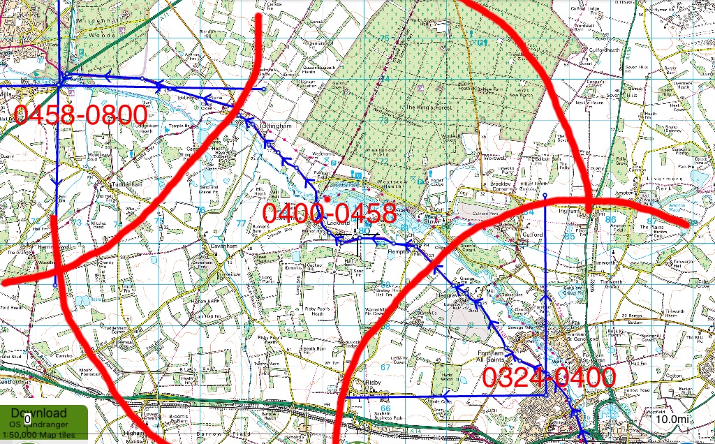 Edit. Can see the circles and the times on midsummers maps. Is 0400 and 0458 the phone pings for BSE mast and BM mast midsummer? Meaning an hour with no signal? That's a long time between the masts isn't it? Has to indicate a stop if those times are right doesn't it?
