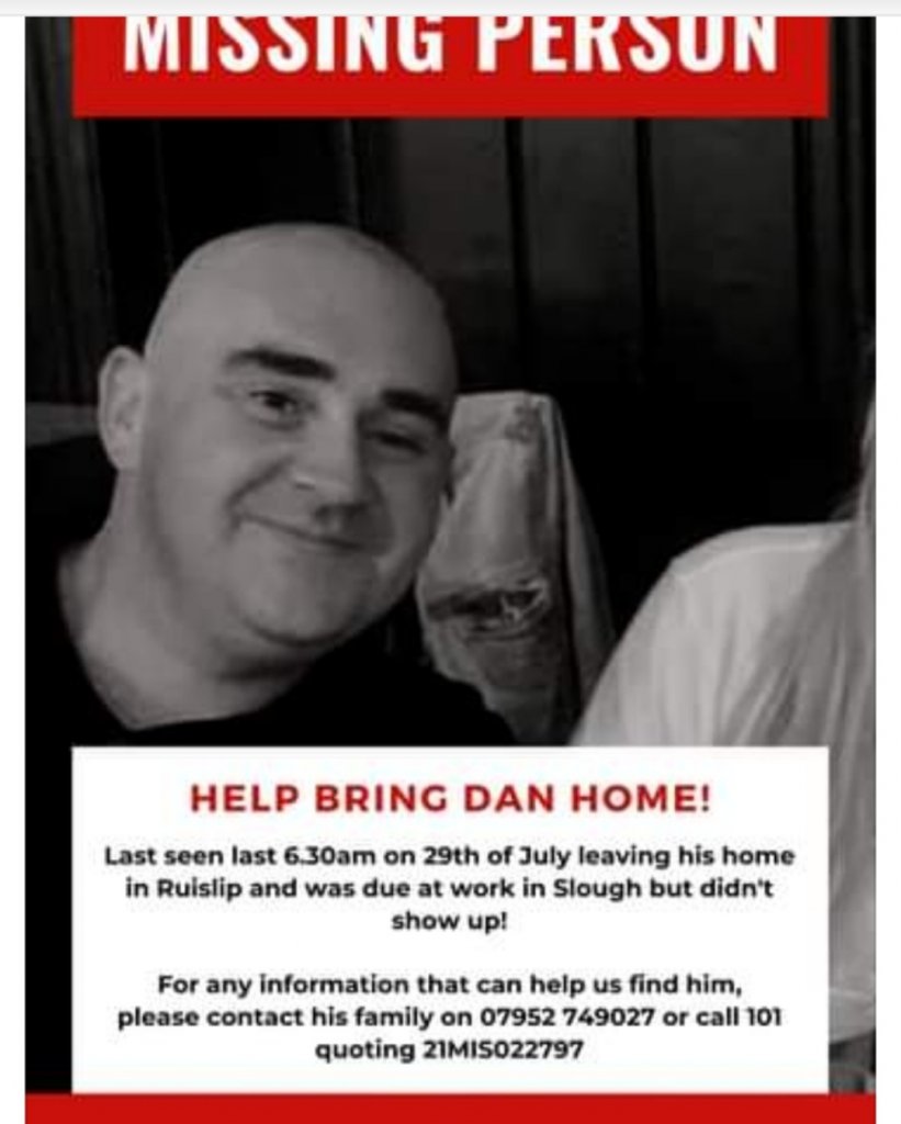 Local friends and family have been searching for Dan, looking in Ruislip Woods near to where he lives. She said: “We checked with people that would have seen him on his route to work - still no sign.”