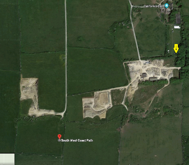 That photo is correct. South of Belle Vue quarry (the westerly one). At the bottom of the track in the field south of the gate as I understand.