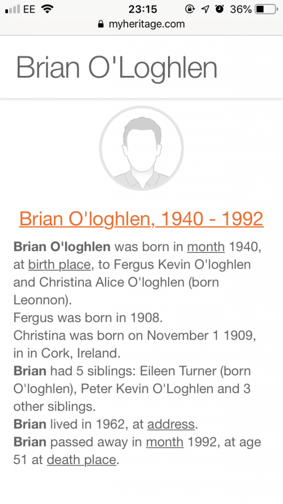I'm not sure if I'm using this site correctly, as I just joined a couple of hours ago. 'The Pavement', is that what the brochure/booklet is called? It was in 96 or 99 when I was shown her picture - and a different pic from the recent ones. Strange thing is that in the earlier pic, Jacqueline looked the image of my younger sister, yet in the recent pics, she's looks like my older sister. Her mother's maiden name was Hood, but she remarried after the divorce with my late brother Brian. Jacqueline was his first child. Her grandparents were Fergus Kevin and Christina O'Loghlen (nee Lennon), being my parents. I'm on AncestryDNA, so I'll do a search for JO'L.