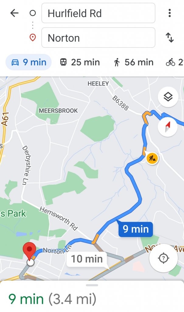 He lives on Hurlfield Road, only about 10 mins from Norton, so not a distance. There does seem to be a big park area - Graves Park - in area.