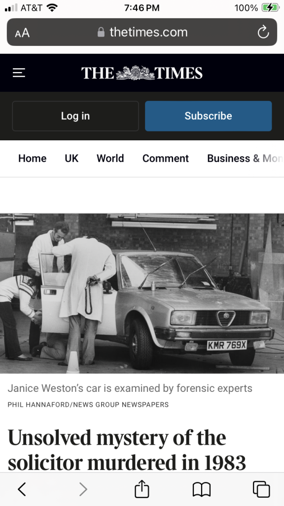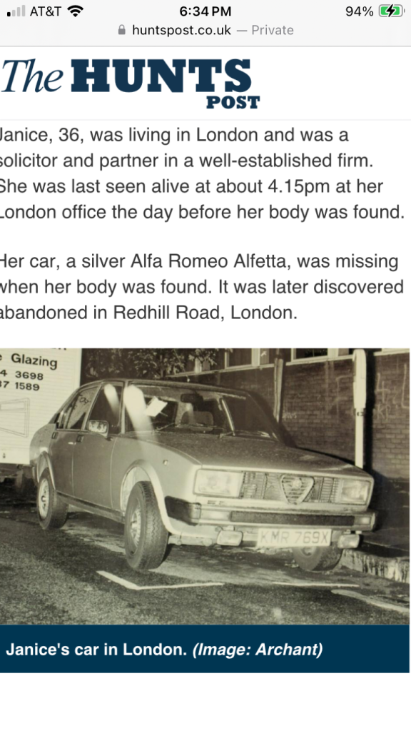 Just floating this theory. MOO obviously. Her husband arranges her murder whilst he's out of the country as a perfect alibi. He has the spare wheel tampered with so that it needs JW to have it repaired. He confects an issue with the rear nearside tyre necessitating the change and tells his wife to take the repaired spare to someone he knows locally late on Saturday to have it fitted at a location within the catchment of her flat, office and where her car was eventually found. She's not going far so leaves her handbag. She's then dispatched while the wheel is being changed, hence the blood evidence on the car. Her body is bundled into another vehicle and transported fast out of London, the quickest route from that catchment being the A1 north bound. Her body and the murder weapon are dumped at a suitable layby on the A1 in the dark where approaching vehicles could be avoided during the transfer. Her car is then moved later from the murder scene to a public location within the same catchment.