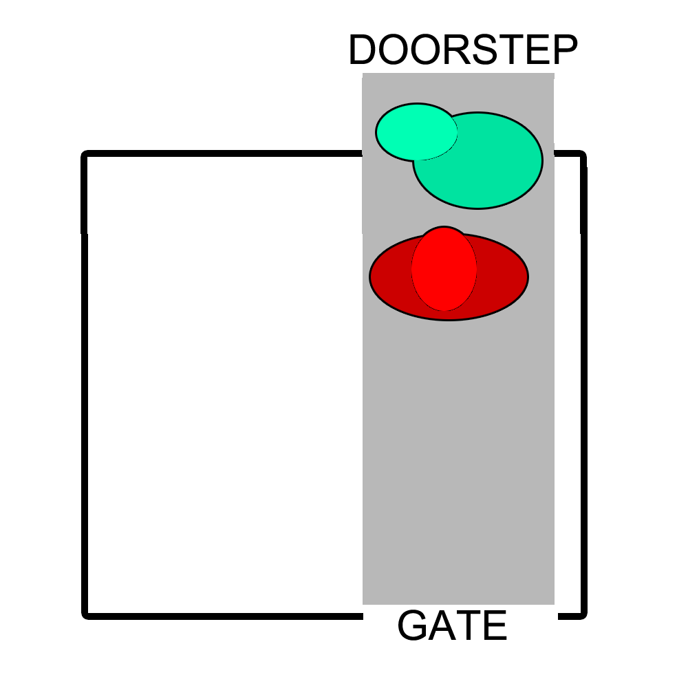 This graphic I've drawn is very crude and not to scale, but bearing in mind how small and cramped Jill's front garden was/is, there wouldn't be much room for the killer to maneuver Jill or himself.