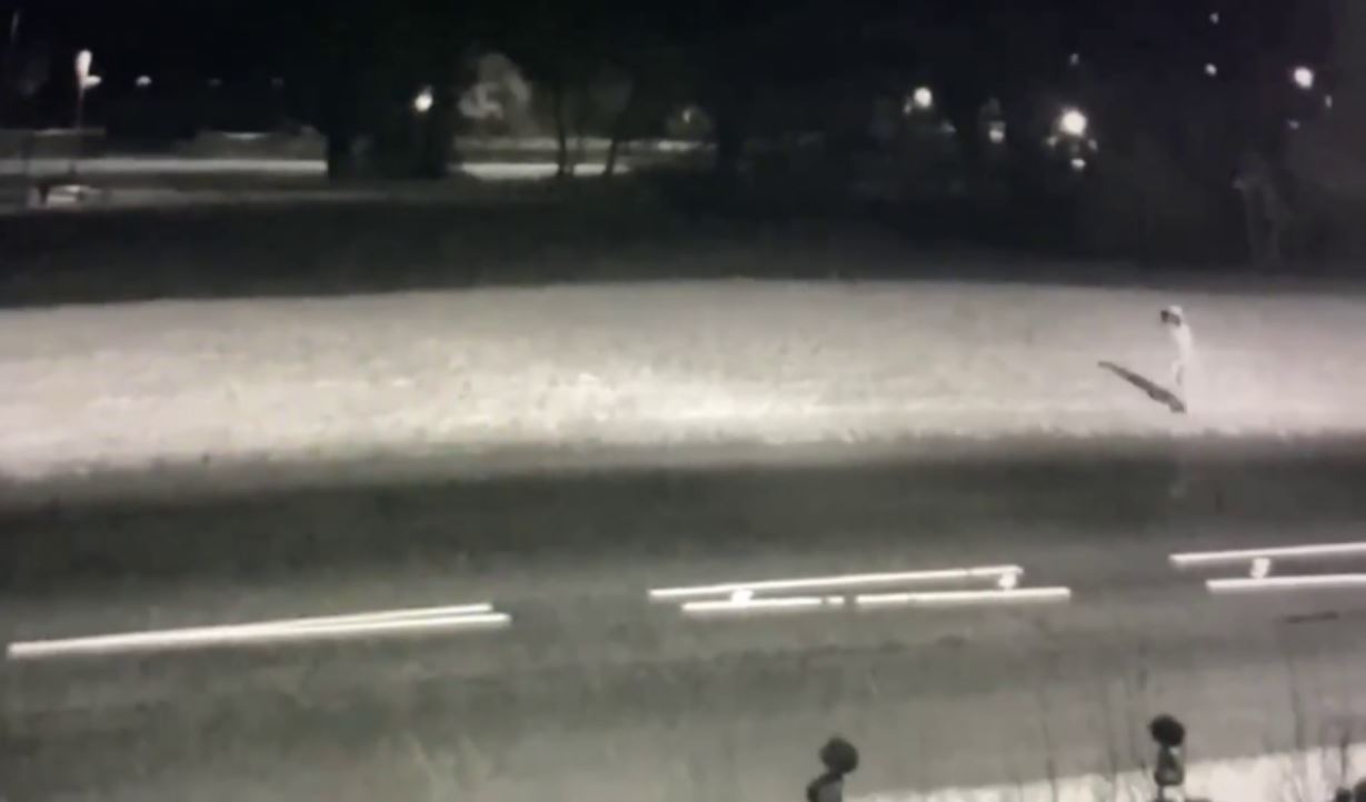 The night-vision recording shows a hooded figure walking along McGregor Road, Cumbernauld, at around 3.15am on Saturday 19 February.