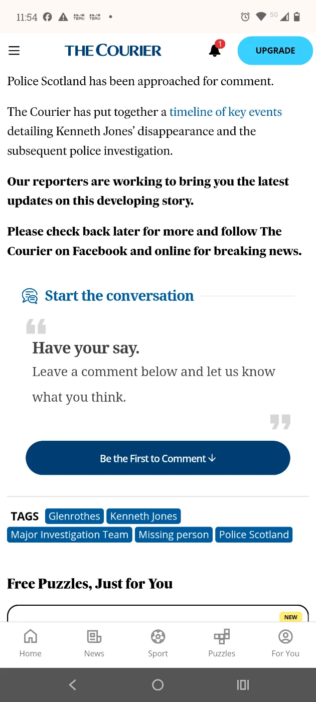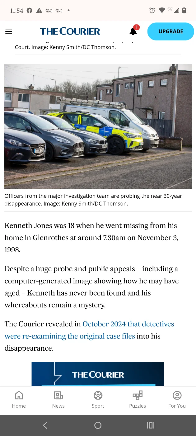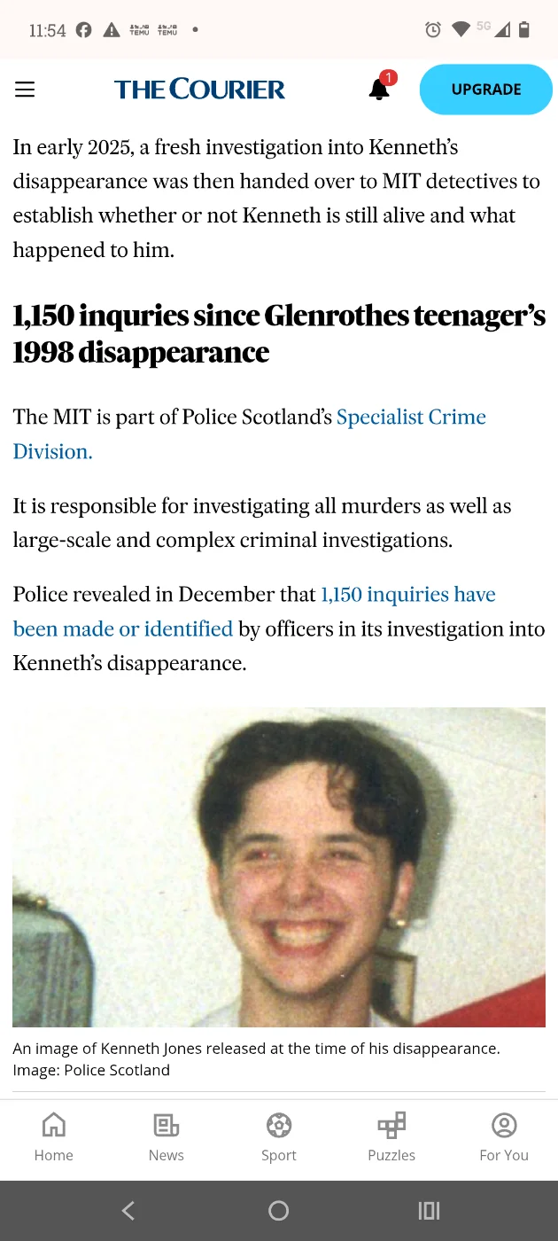 Jones was last seen at 7am when he left his home in Ancrum Court, Glenrothes. He has never been seen or heard from again.
