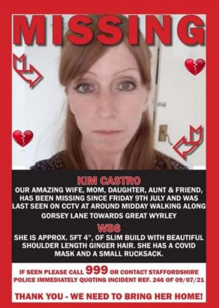 A spokesman for the force said: "#MISSING We need your help in finding 49-year-old Kim Castro, from Cannock.