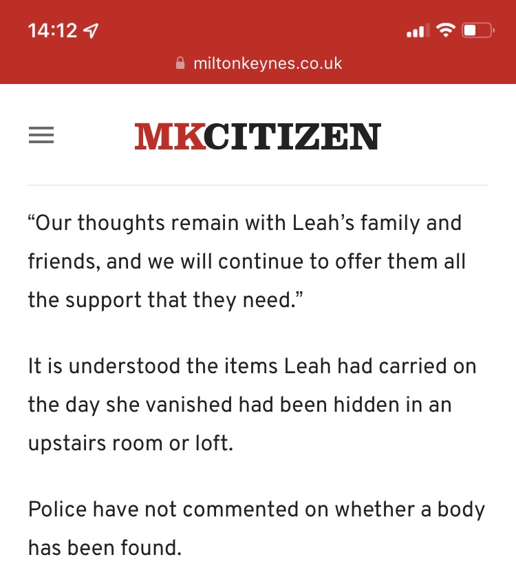Officers have been searching since Monday night at the home in Furzton, the area of Milton Keynes where missing teenager Leah Croucher was last seen. | ITV News Angliawww.itv.com