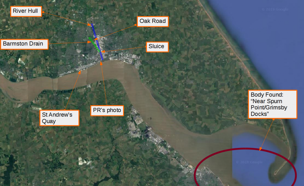 That certainly does appear to be rather close, judging by the image, if the sluice the point marked red.The body was found in the water off spurn point can't remember how far off the coast she was found.