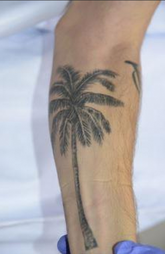 Zoomed in+rotated palm tree tattoo.