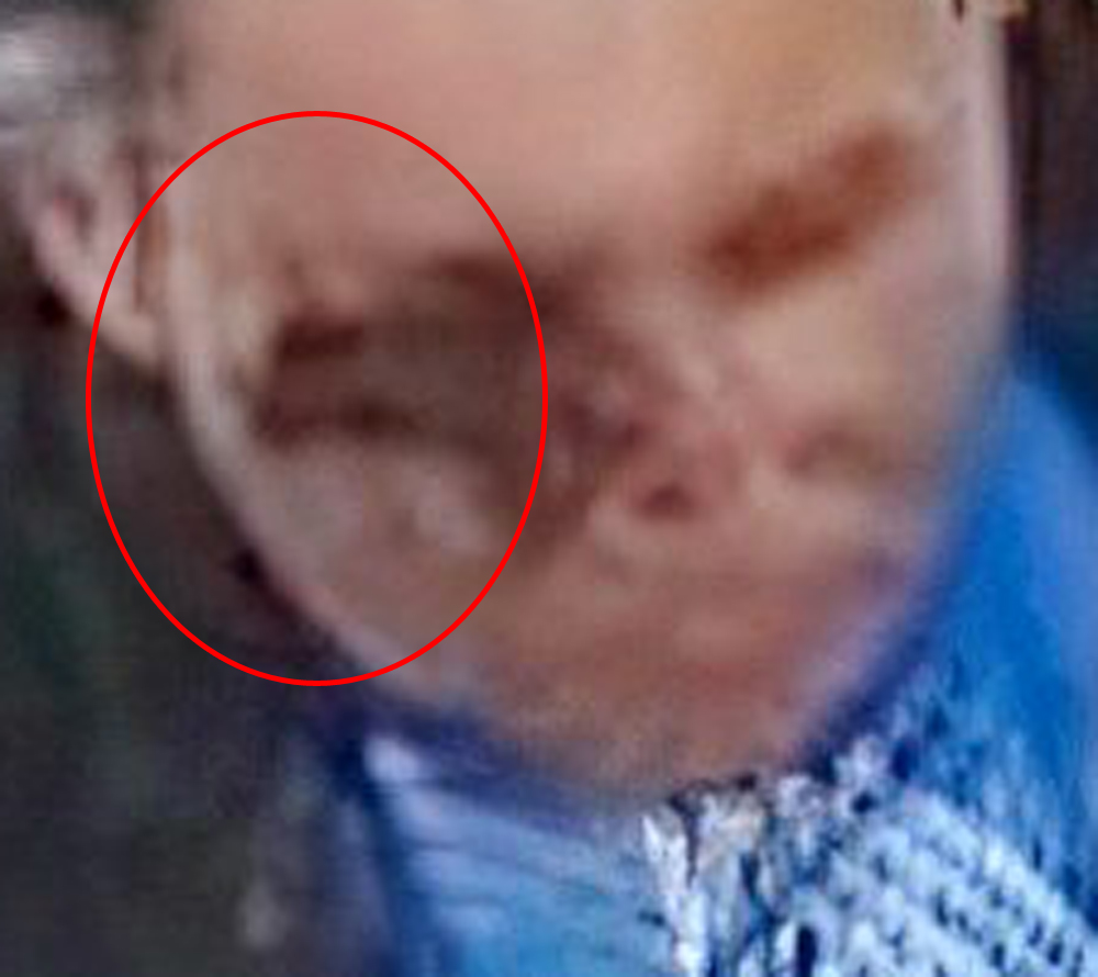 This is one of the clearest, highest quality images I've seen so far. IMO you can see the cuts/abrasions on the high points of his right eyebrow, cheekbone and nose.