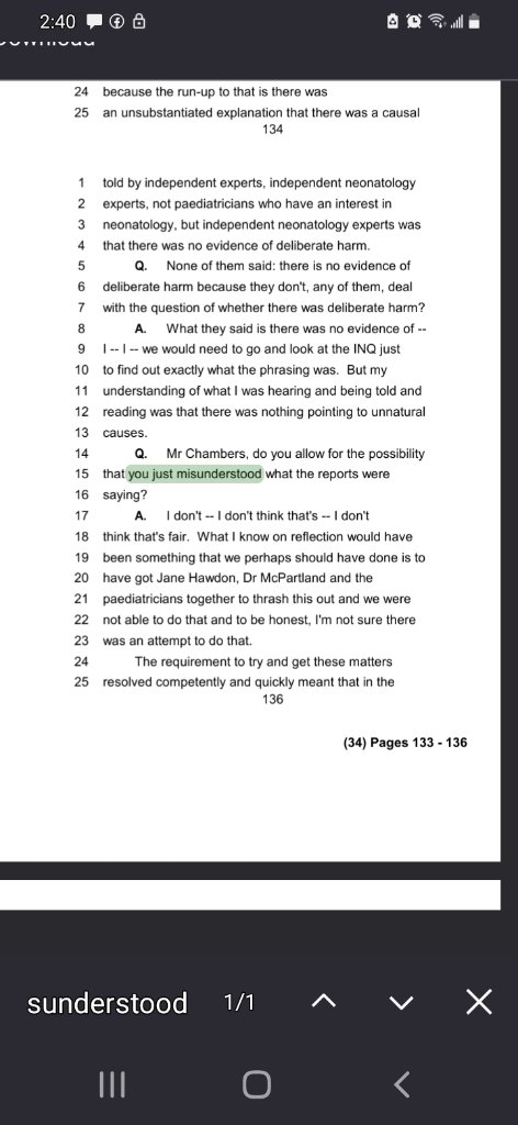 Langdale KC replies: "And did you fail to have Lucy Letby investigated by the police earlier and to be removed from the NNU?"
