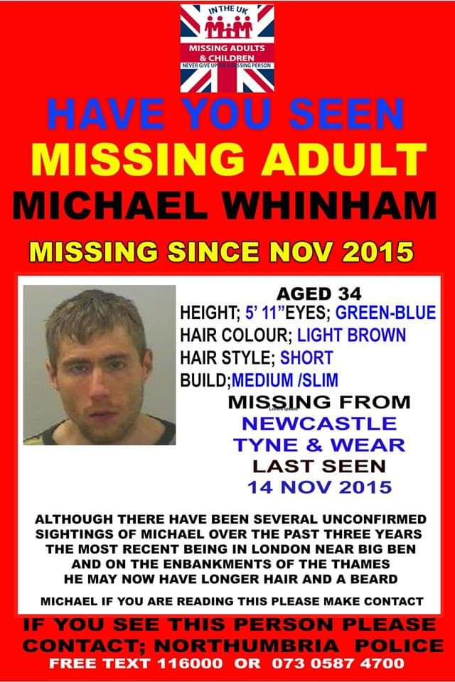 There was a young man who came forward to say he had been living rough with micheal and they had been sharing money they made from begging. He unfortunately passed away. I'm pulling all of this from micheals official missing page on Facebook.
