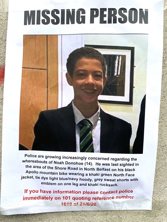 Please read our updated appeal for information below about missing 14-year-old Noah Donohoe.