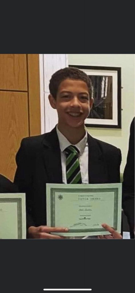 Noah left his home on his black Apollo mountain bike wearing a black skateboarding helmet, khaki green North Face jacket, grey sweat shorts with an emblem on one leg, a tie-die blue hoody, Nike trainers with a bright yellow ‘tick’ and carrying a khaki rucksack.