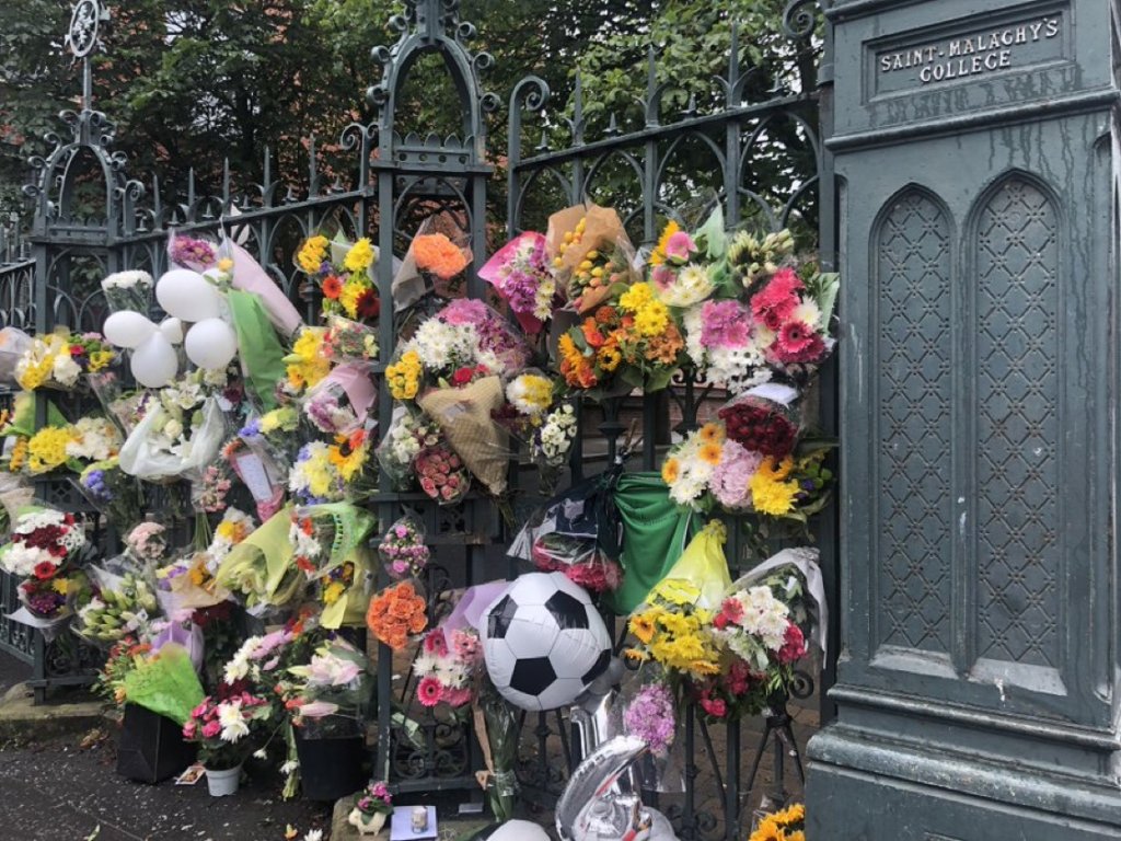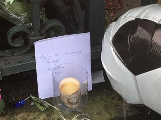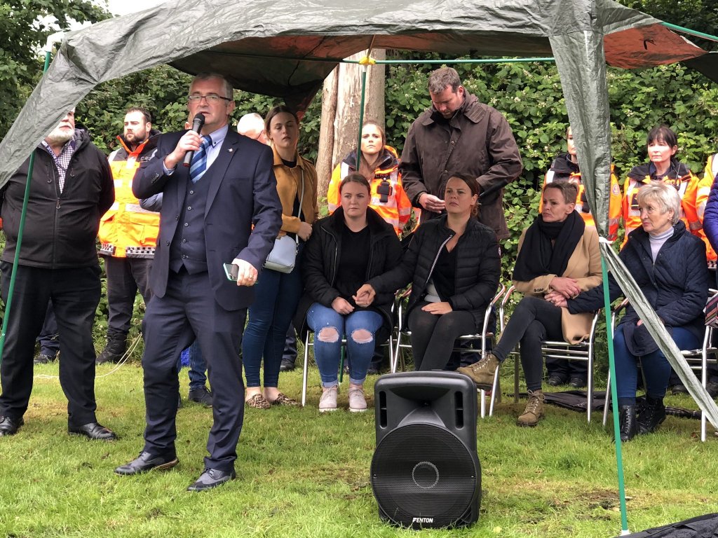 Heartbroken members of Noah Donohoe’s family look on as emotional @CommunityRescue regional commander Sean McCarry addresses the crowd at tonight’s cross-community vigil in north Belfast, and thanks them for their heroic efforts to find Noah over the past week