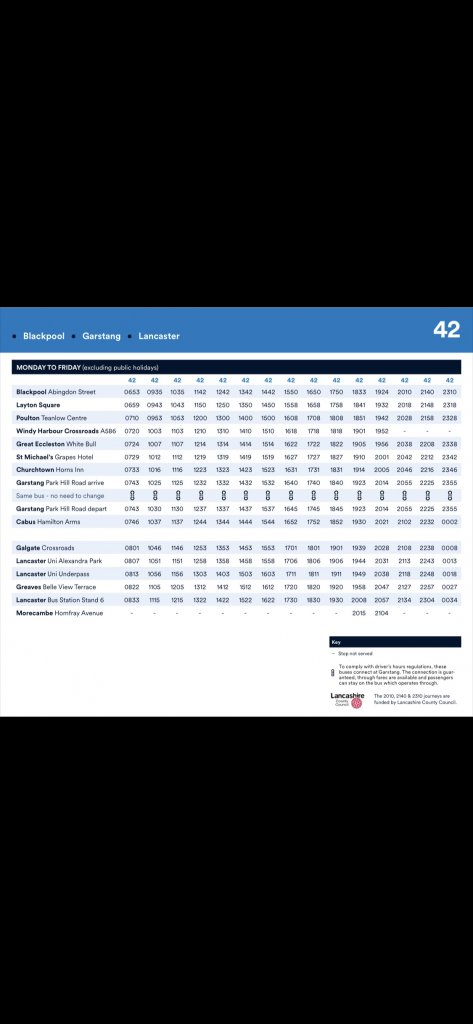 This is Blackpool-Lancaster( the first was Lanc-Blackpool) buses are few and far between!
