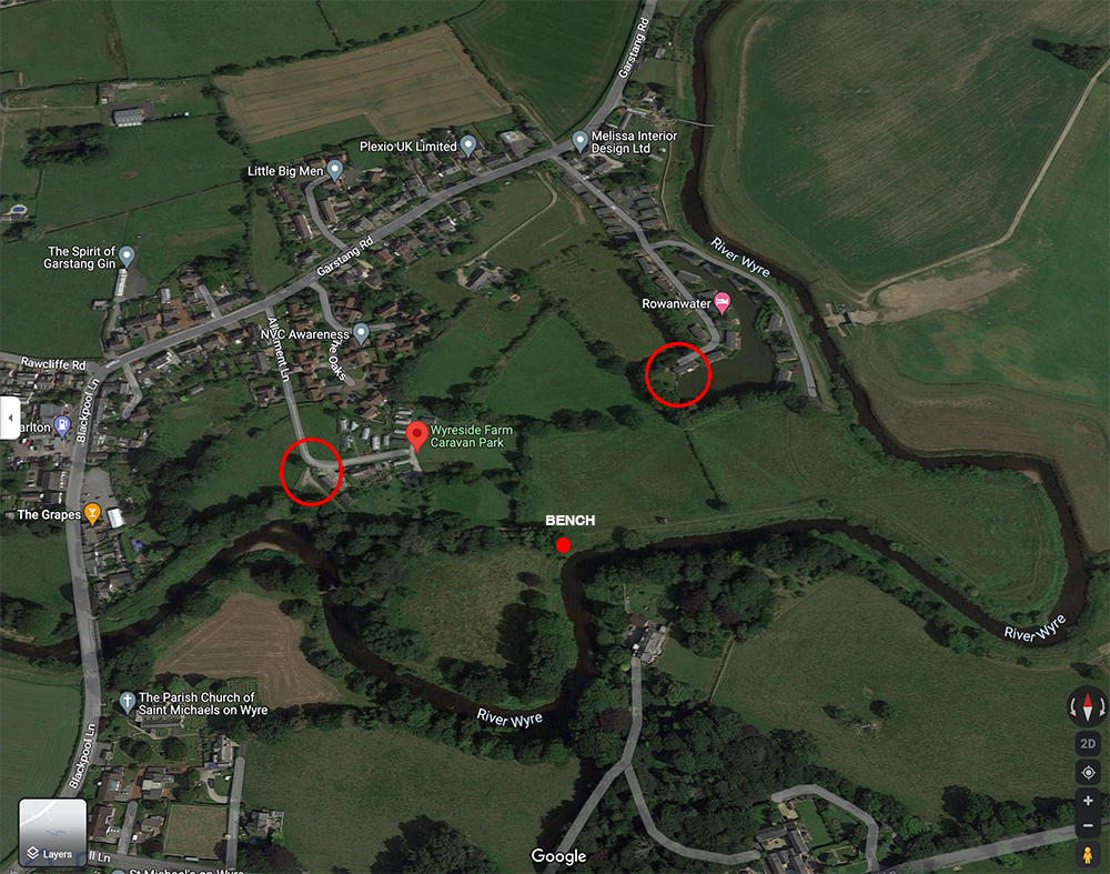So potentially where she was last seen in the upper field is close to the Rowanwater lodges (red circle on map). If she had been abducted in the top right hand corner of that field, could she have been put in a car (concealed) and then taken up that road to the exit at Garstang road? Can you even get through to Rowanwater from the upper field? JMO.