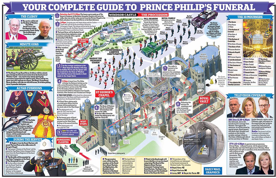 The 30 limit rule does not include clergy, and the Archbishop of Canterbury and the Dean of Windsor will preside over the service. A small choir of just four people, including one soprano, will sing pieces of music chosen by the duke.