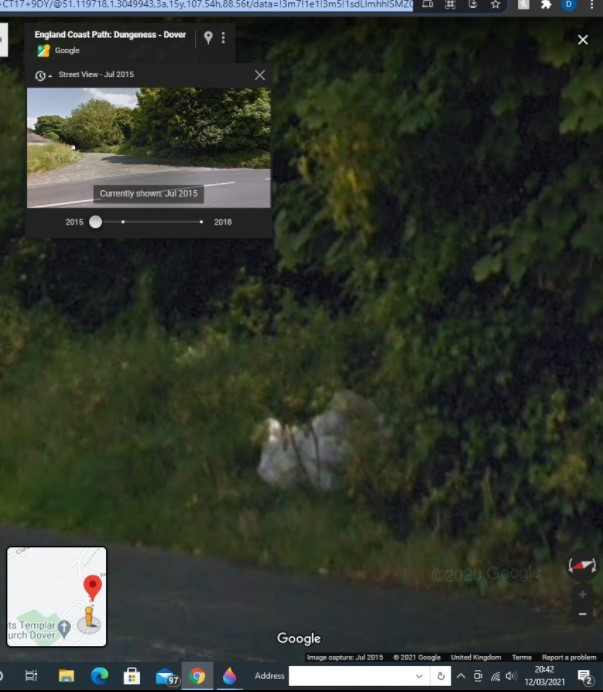 The bag was left outside the garage in 2015. The following Month someone comes along with a digger in the same place where the bag still was. It is definitely someone who worked there though as they have a pick up truck which is parked in the car park in earlier years. I think they where probably building the four stones which are now currently in front of the building. The bag was possibly discarded rubbish, who knows. It is all on google maps in 2015 at the garage address.