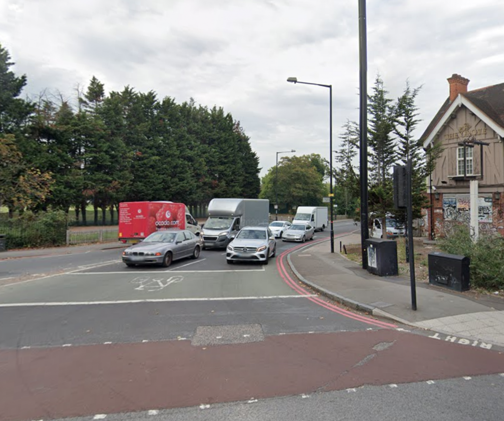 Look at the sign in the background. This is on the road going up to the College, which these cars in the 2200 030321 video at Lordship Lane are coming from.