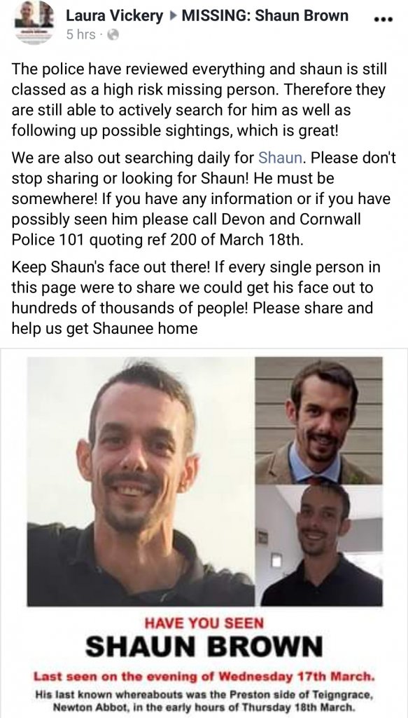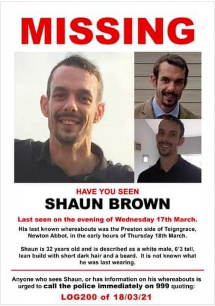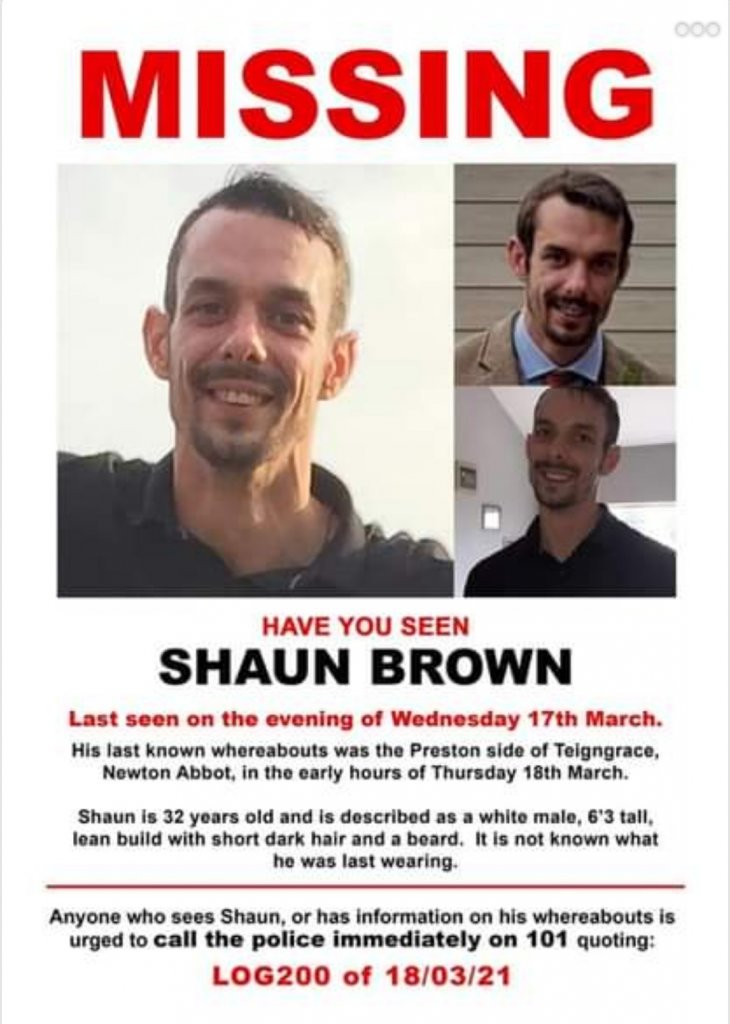 Shaun Brown was last seen at his home in Kingsteignton on the evening of Wednesday 17 March.