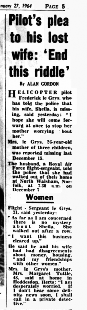 Shall keep searching as because of his piloting career this might have been considered newsworthy then? Also wondering if 'friends' of both Fred and/or Sheila were approached for comments.