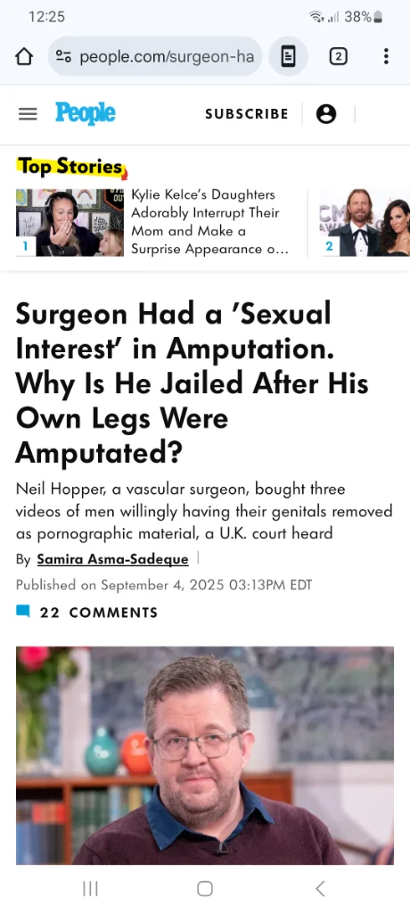 And I have no idea what "false pretenses" he could have MADE UP that another surgeon would fall for so far as to amputate his legs - BOTH of them! I think this other surgeon had to have known it wasn't necessary and maybe they just did it for the money? What can you possibly fake that would convince a real doctor to cut off both your legs??