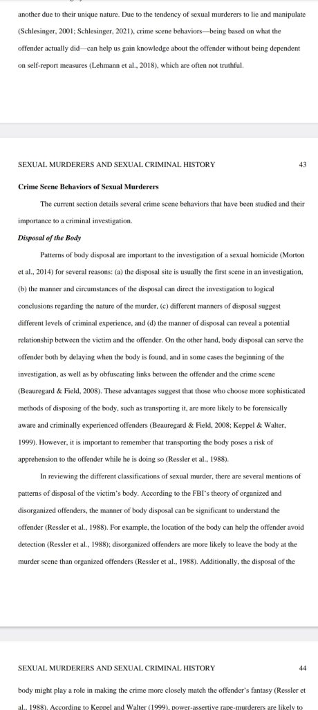 This is an extract of a pdf on crime scene behaviours in sexual motivated murdersI.ive added full link if anybody interested