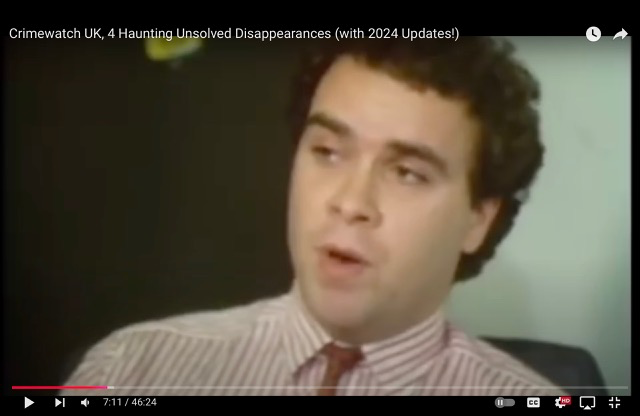 Title of the video is Crimewarch UK: 4 haunting unsolved disappearances. Sjl's case is first up. MG is at 7.18.