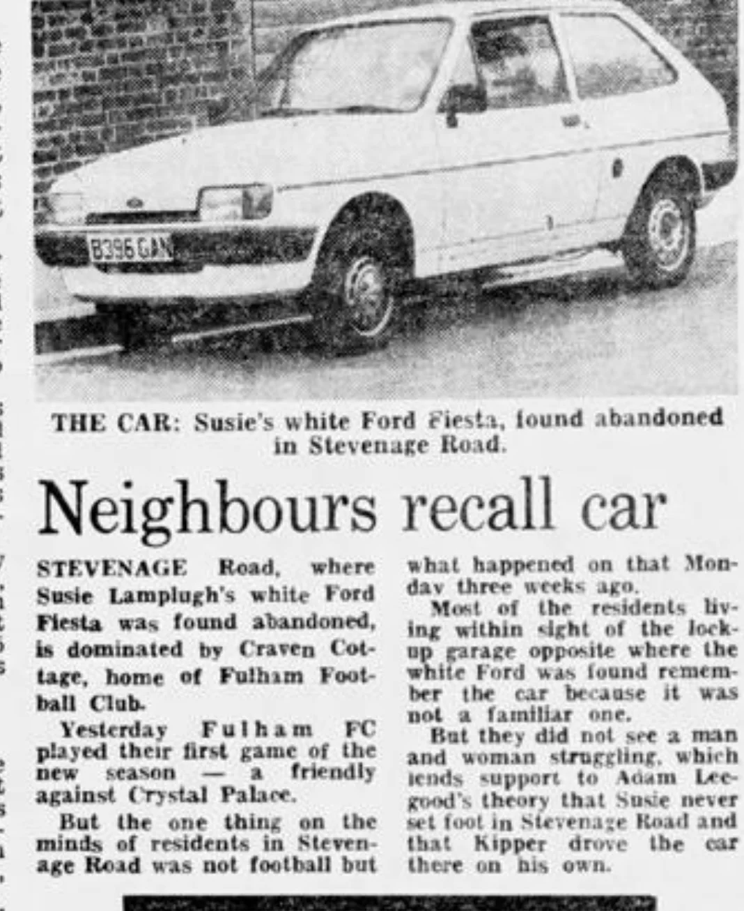 The "other" white car that the police tried (and failed) to find, in a bid to explain the Stevenage Road anomaly concerning the white Fiesta, is literally staring us all in the face right there in that frame I uploaded from the 1986 Crimewatch documentary.