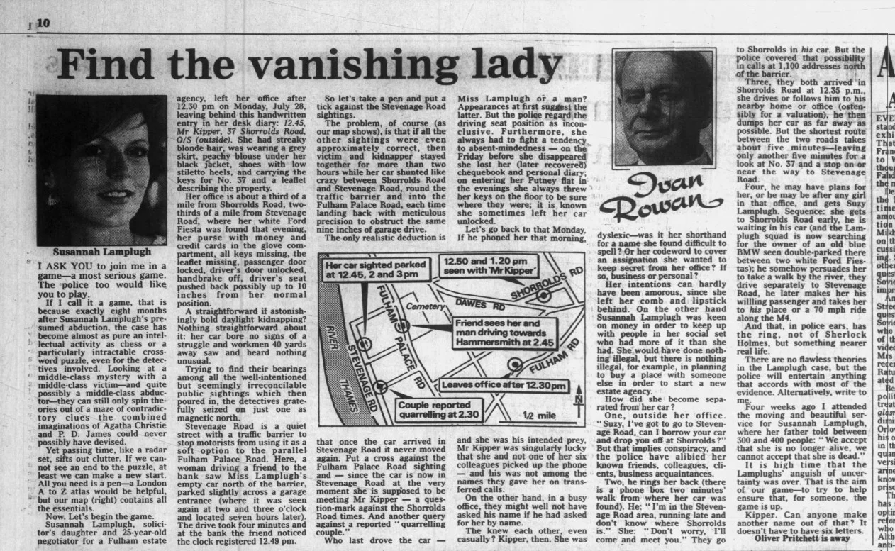 Did the police ever bottom out who she saw? The expat presumably confirmed or denied when Interpol involved. She’d met him at an HAC ball with AL & DW, from ‘Putney Set’ on Sat 5th July. July 17th AL heads to Canaries.