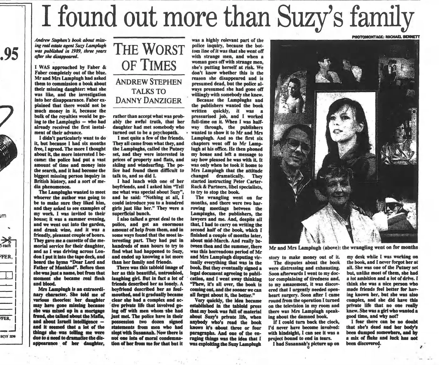 DL was quite a writer & found it therapeutic. I think the Lamplughs really wanted a different sort of book commissioned & wires were unfortunately crossed. DL thought AS an excellent writer & journo pre book. Handing over SL’s personal diaries etc potentially problematicj.