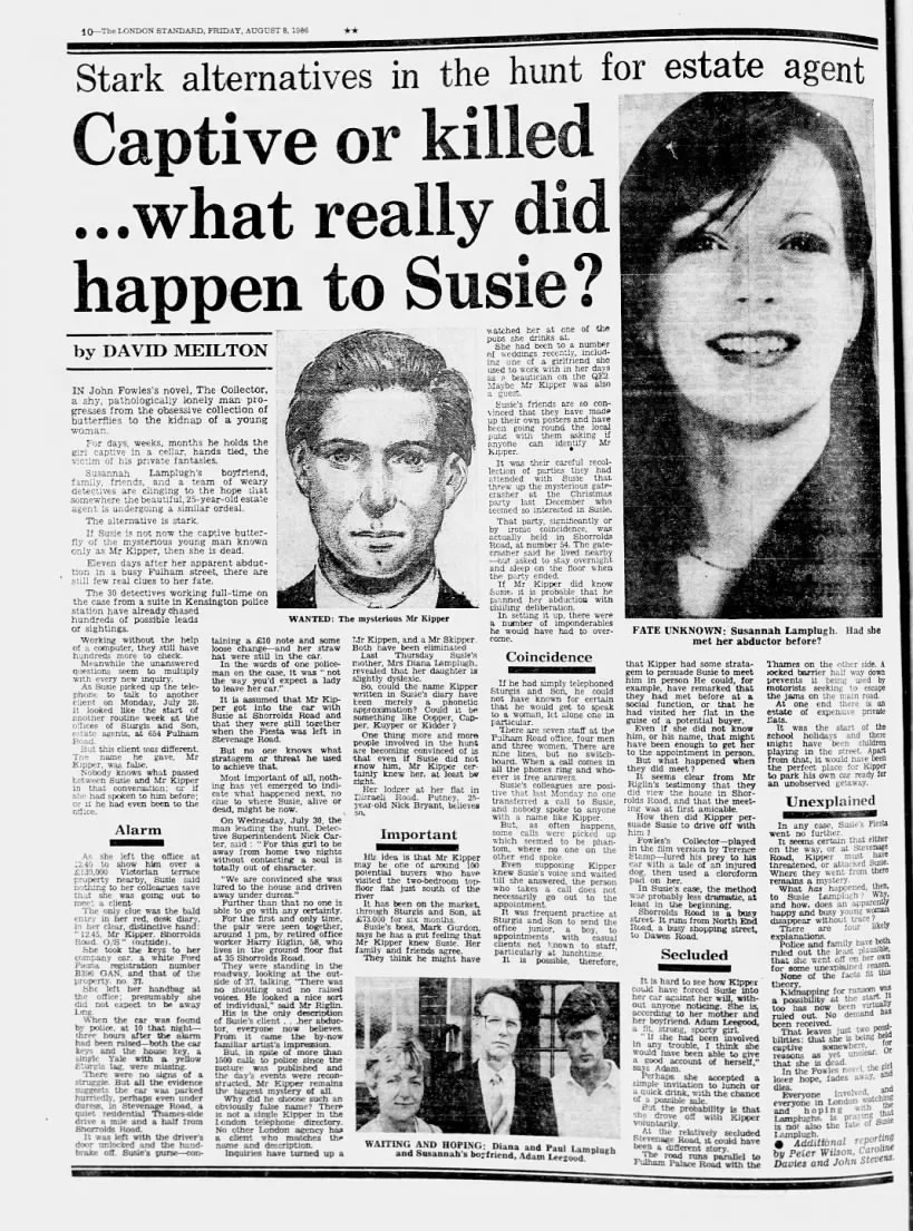 Funny that the Lamplughs didn't consider a random/unplanned abduction, considering that the same thing happened to their younger daughter, out of the blue, six years after Suzy vanished.