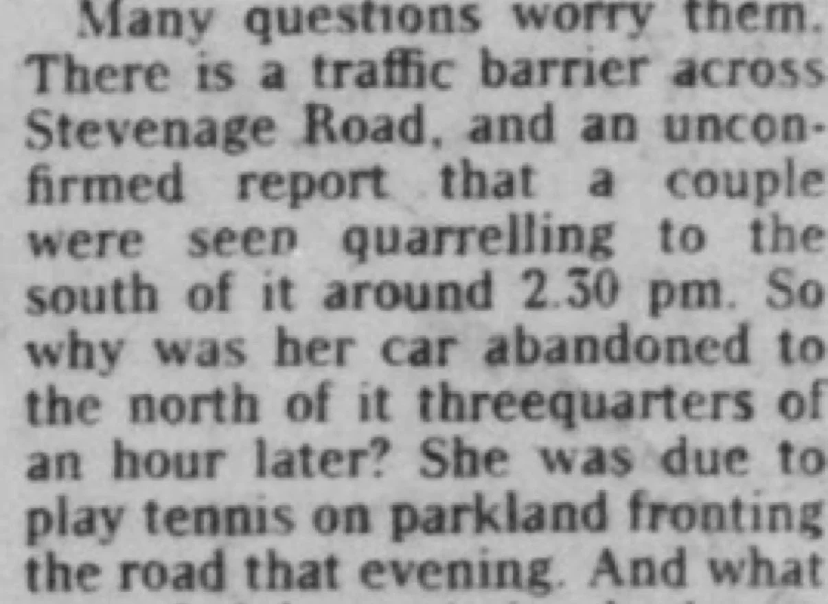 Yes - exactly, on earlier Bristol or West Country affair. Mentioned to client at Face Place (beauticians) in 1984 approx.Perhaps so but I struggle with the idea that in July 1986 JC would have drive 130 miles to dump a body. He can't have had that many opportunities to recce the area at that point, and later, after he had had time from living in the area, he only went 40 miles from Bristol with SB. Not to say it's impossible.