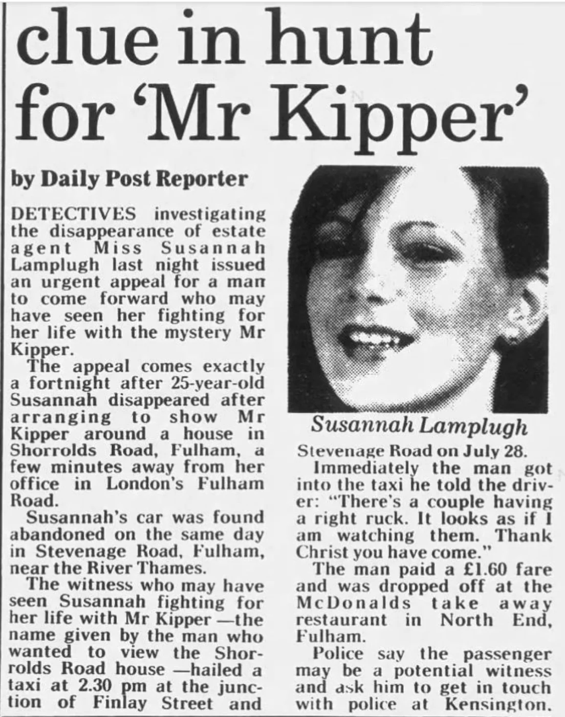He was on day release since January, had weekends off and the curfew was slack. It is very odd, though, that if this was true, we were never shown a sketch of these other Kipper sightings taken from other estate agency staff. Unless none ever met him.